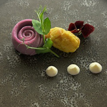 appelcurry | mini courgette | parelcouscous risotto | shiitake | Serranoham crumble