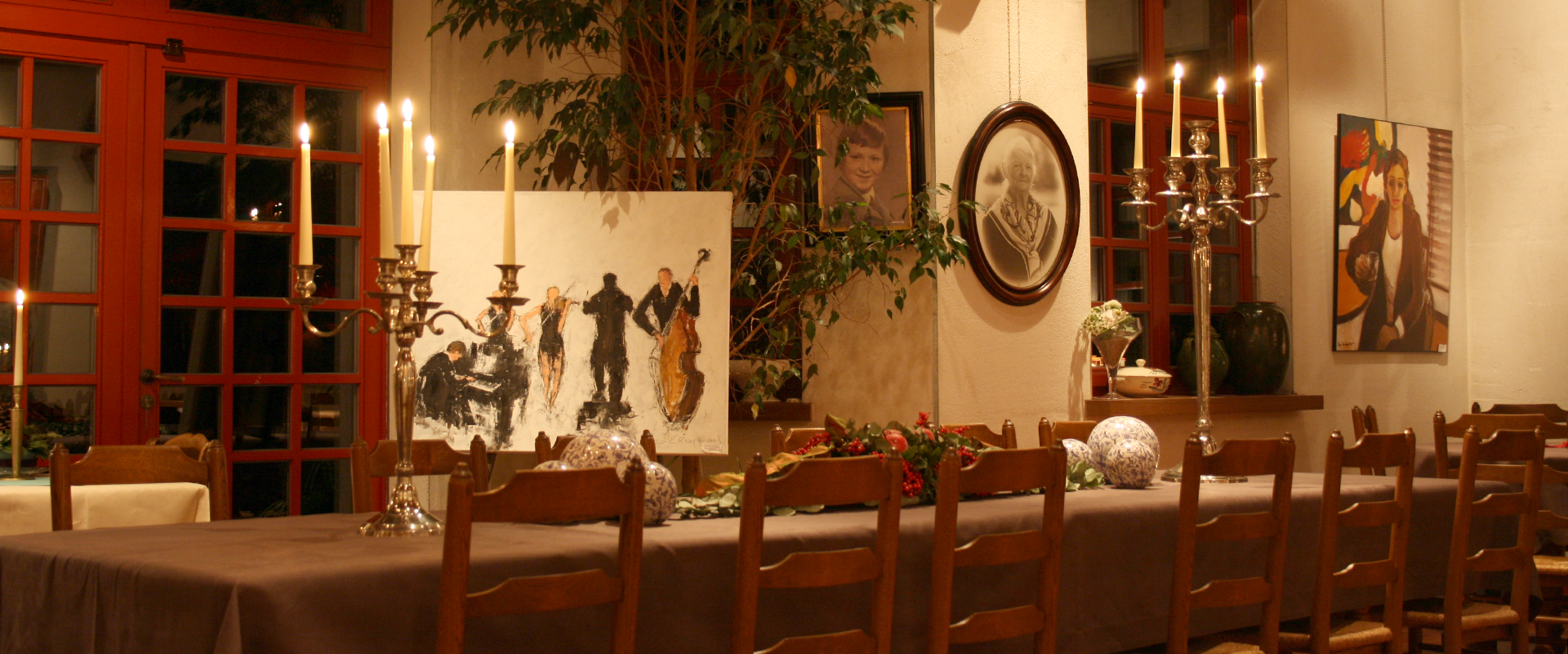 Feesten, en recepties worden koninklijk geserveerd in sfeervolle en artistieke ruimten.